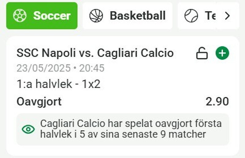 Om det finns ett större utbud så kan du också klicka på fliken nedanför för att välja mellan olika sporter, så att du kan satsa på din favoritsport.