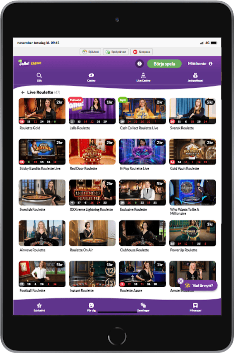 Nu för tiden har så gott som varenda casino på nätet också en sektion för livespel. Här kan man oftast sortera efter roulette, blackjack, baccarat eller game shows. Ibland används kategorier som bordsspel och kortspel. Det finns många spelutvecklare som tillverkar spel för live casino, men jag rekommenderar att hålla ögonen öppna efter Evolution. De har det största utbudet och flest klassiska favoriter.