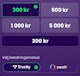 Välj sedan beloppet du vill sätta in bland de förvalda alternativen, eller skriv in ett eget belopp. Minst 100 kronor. Välj om du vill använda dig av Trustly eller Swish och scanna QR-koden med ditt BankID för att godkänna överföringen. Så enkelt är det att komma igång hos ett Pay N Play casino!