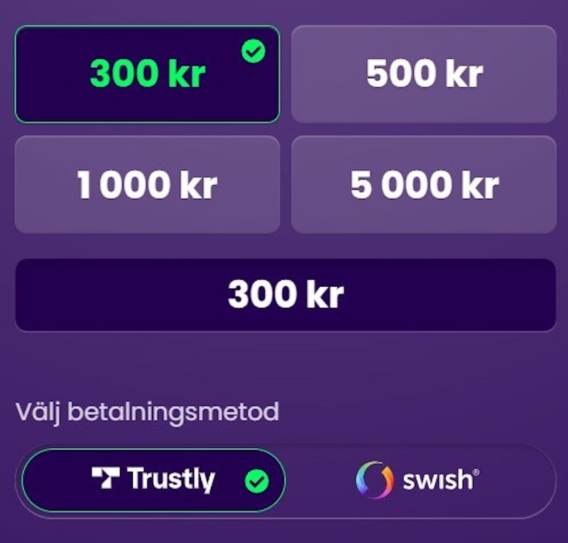 | Insättningsmetoder | Swish, Trustly |