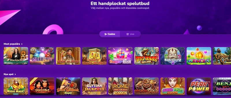 | Casinoleverantör | NetEnt, Pragmatic, Push Gaming m.fl. |