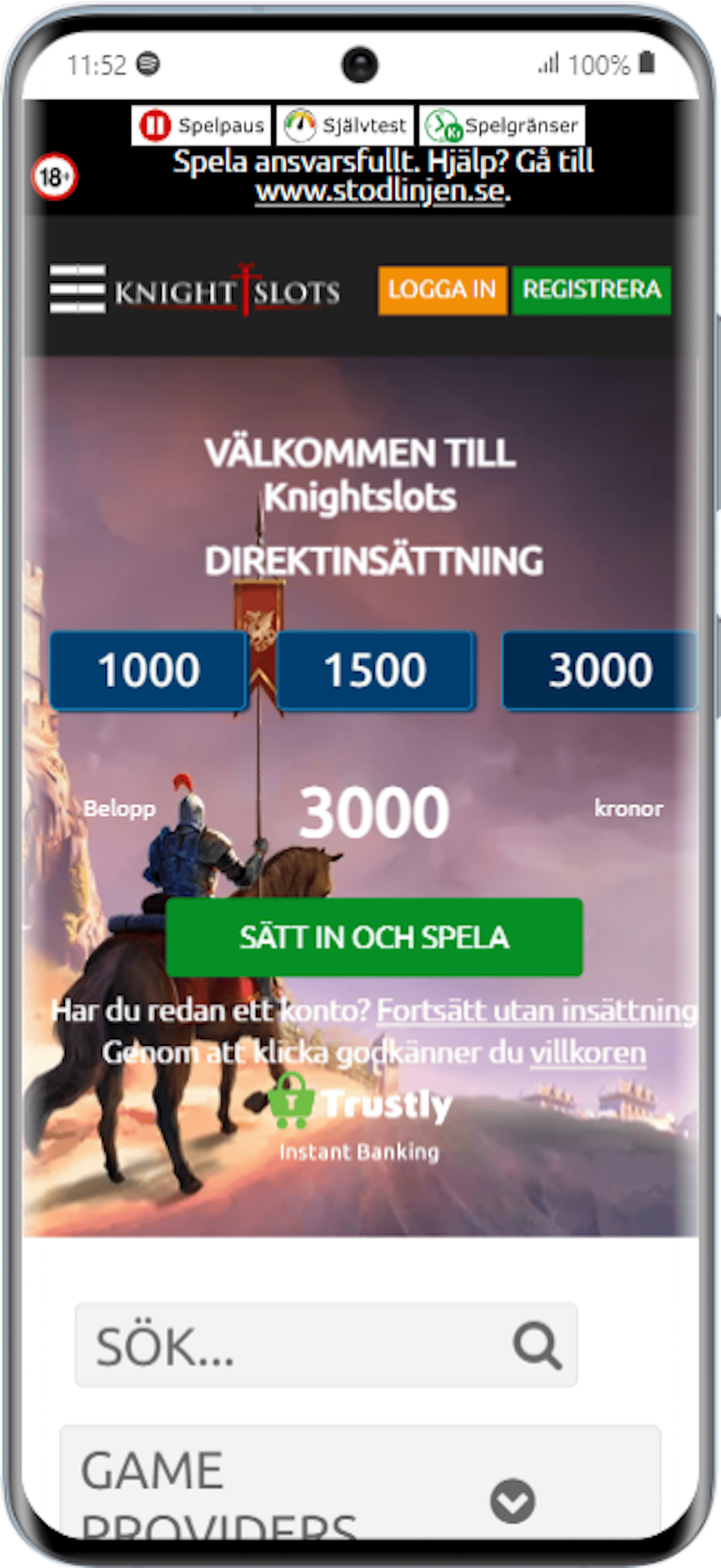 Pay N Play är helt rätt i tiden och något som Knightslots satsar på. Här är det verifiering med BankID och redan nämnda Trustly som möjliggör detta. Smidigt, säkert och utan krångel när du ska komma igång samt sätta in pengar.