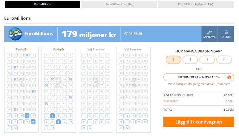 Nästa steg är att välja dina nummer till det aktuella lotteriet. I vissa fall kan du även välja antal rader. Notabelt i övrigt är att det oftast finns en snabbvalsfunktion om du vill göra det enkelt för dig. Det innebär att numren dyker upp slumpartat och är inget som du behöver fylla i på egen hand, utan det räcker med ett enda klick.