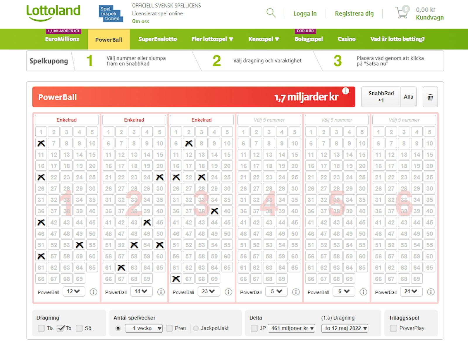 - Lägg minst en rad i EuroMillions.