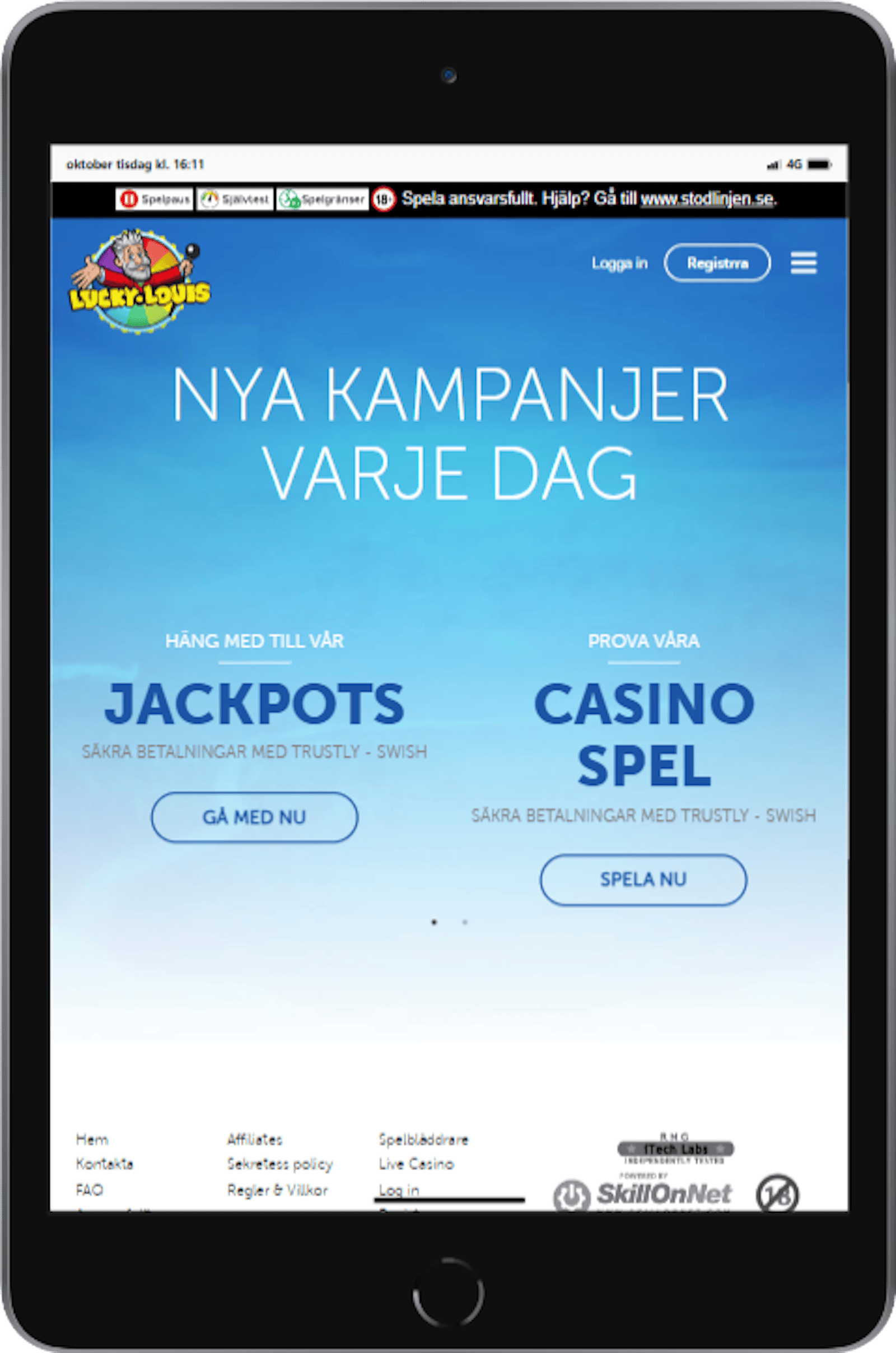 - Produkter: Casino och live casino.