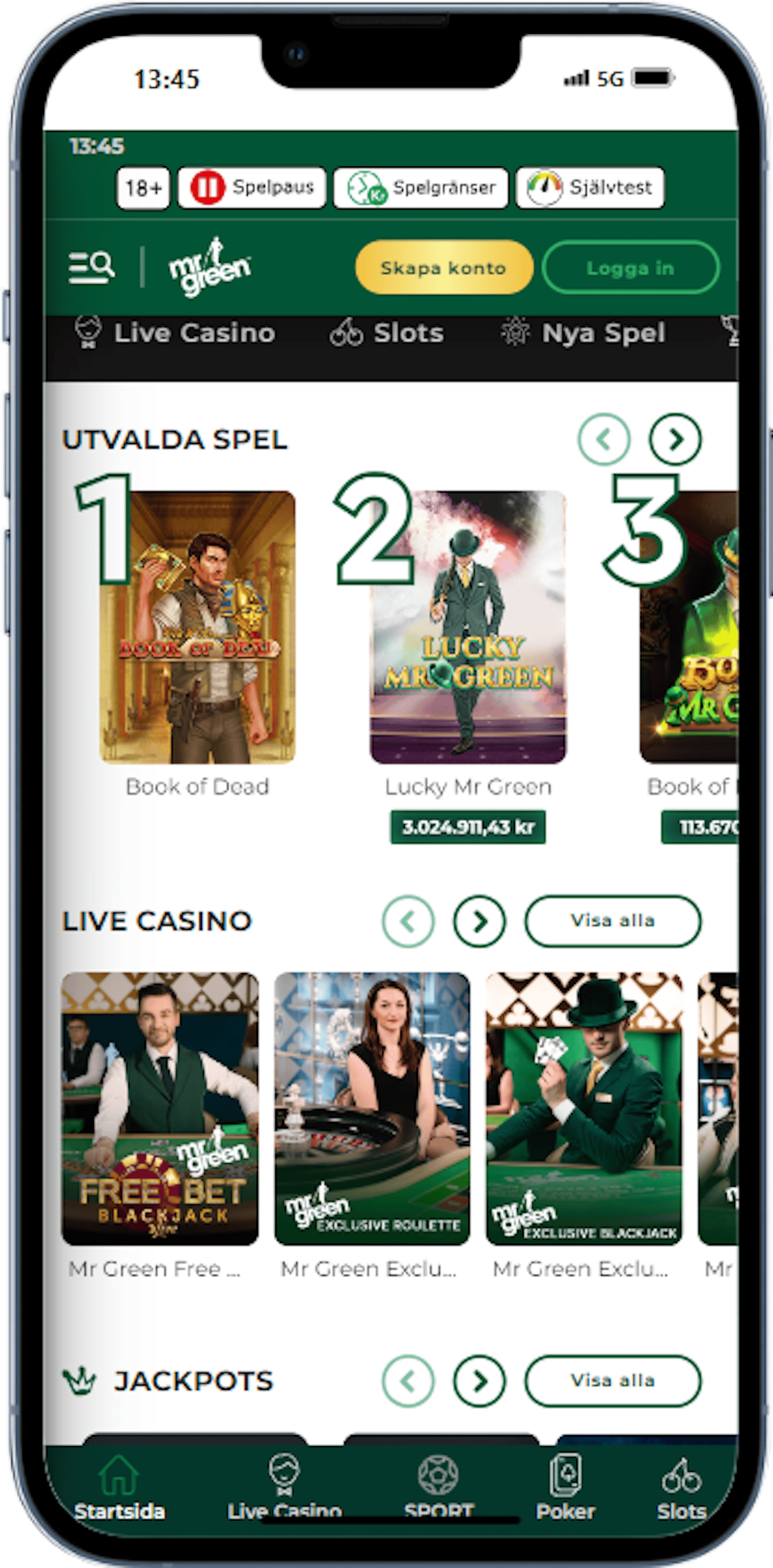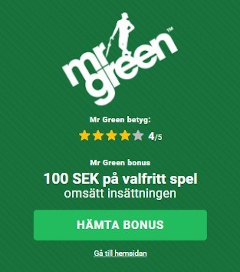 Mr Green erbjuder mångsidiga välkomstbonusar i olika prisklasser, som kan ge nya kunder antingen bonuspengar eller free spins på slots. Bonusarna kräver olika minsta insättning och olika bonuskoder.