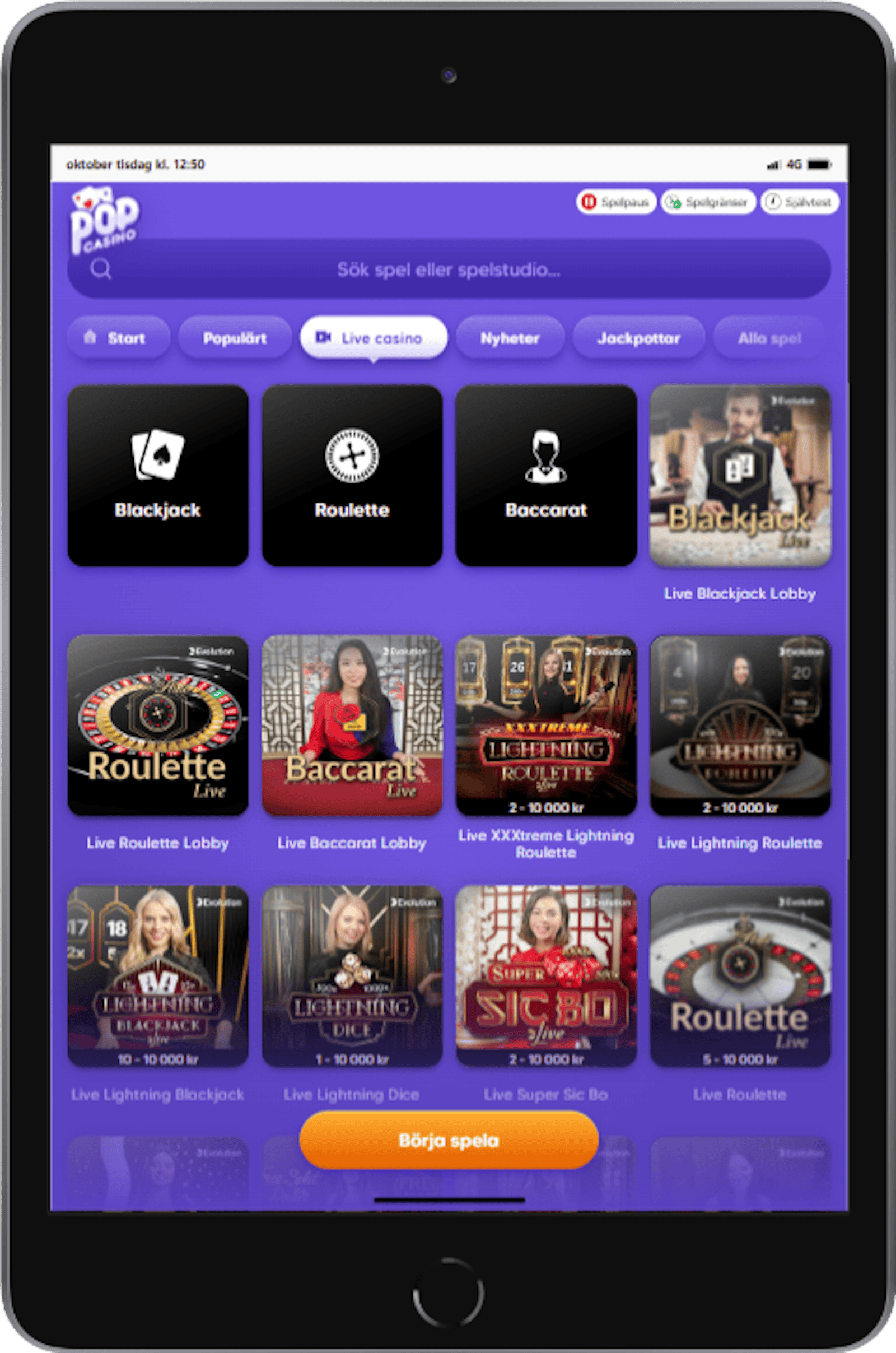 Livecasino hos Pop Casino