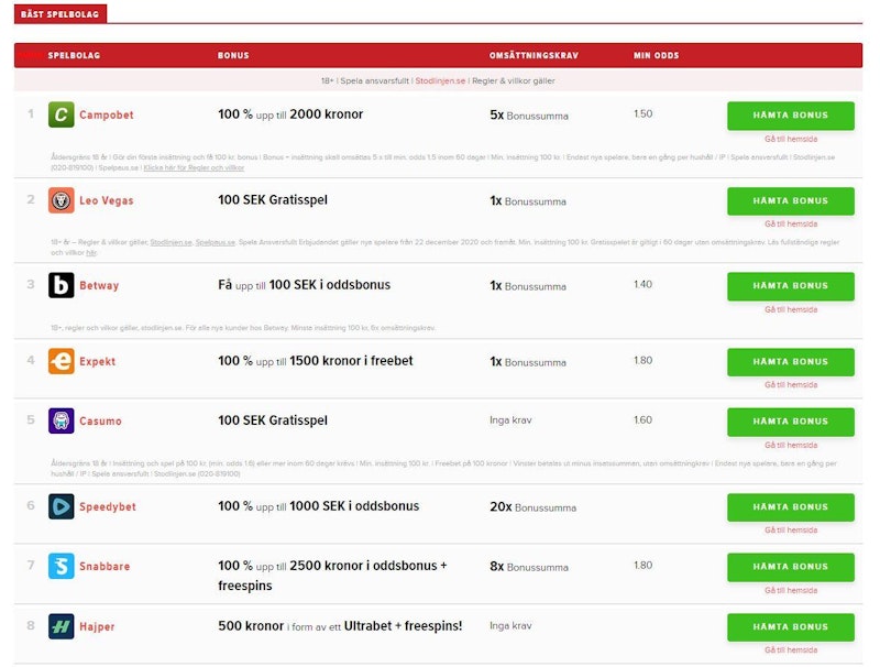 Alla svenska spelbolag på nätet