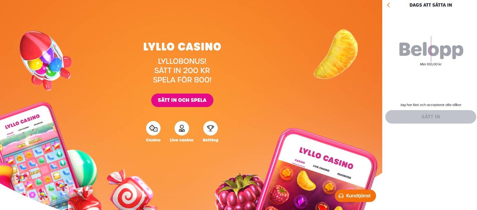 500 SEK live bet Utan omsättningskrav | Swish för insättning
