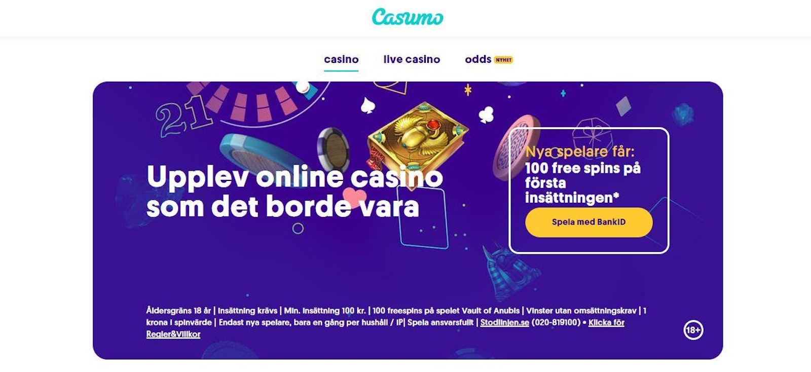 Spela för 100 SEK få 100 SEK free bet utan omsättning + free spins | Swish för insättning