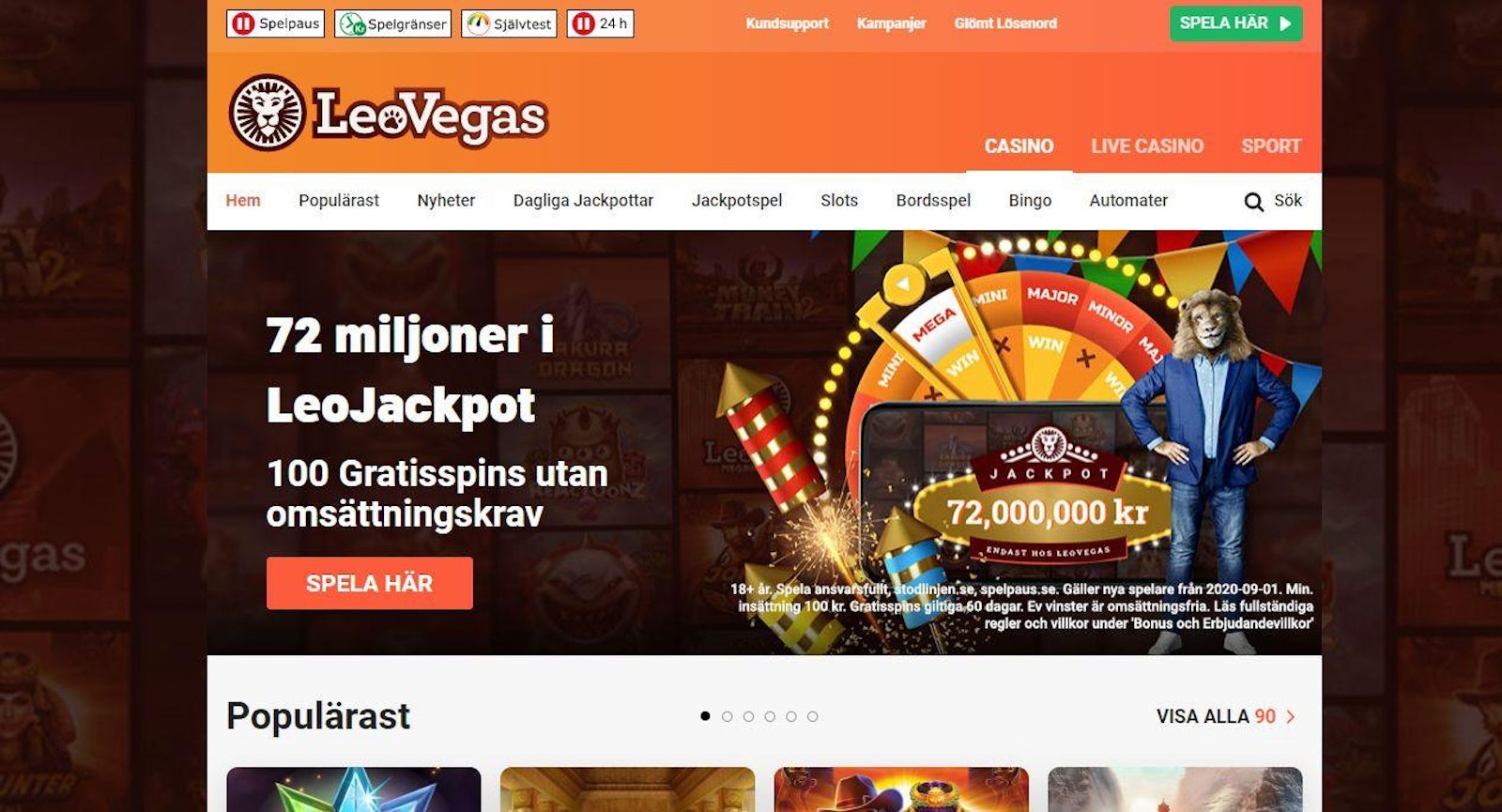 LeoVegas är en spelbolag som har det mesta. Allt ifrån höga odds till ett stort utbud. Det finns även ett högklassigt nätcasino och Swish finns för såväl insättning som uttag.